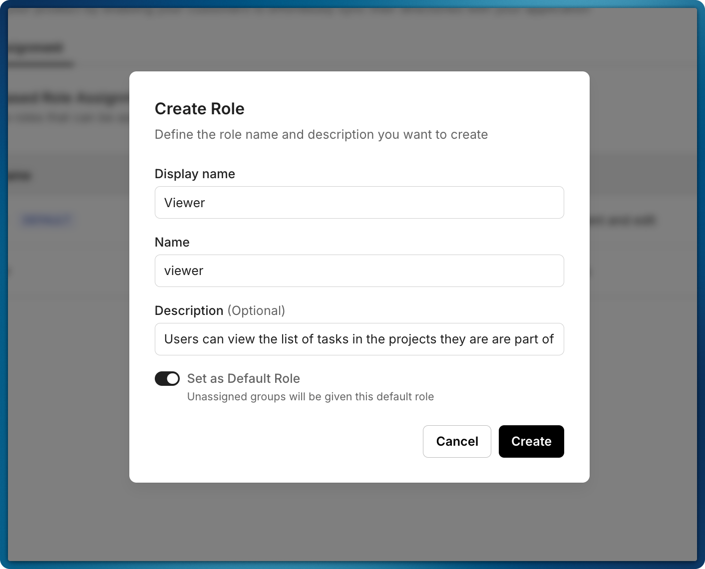 The first role you create becomes the default role automatically. Users who don’t belong to any specific group receive this role when you create their accounts. To change the default role, navigate to the role settings, click the ”…” menu next to your preferred role, select “Edit,” and toggle the “Set as default role” option.