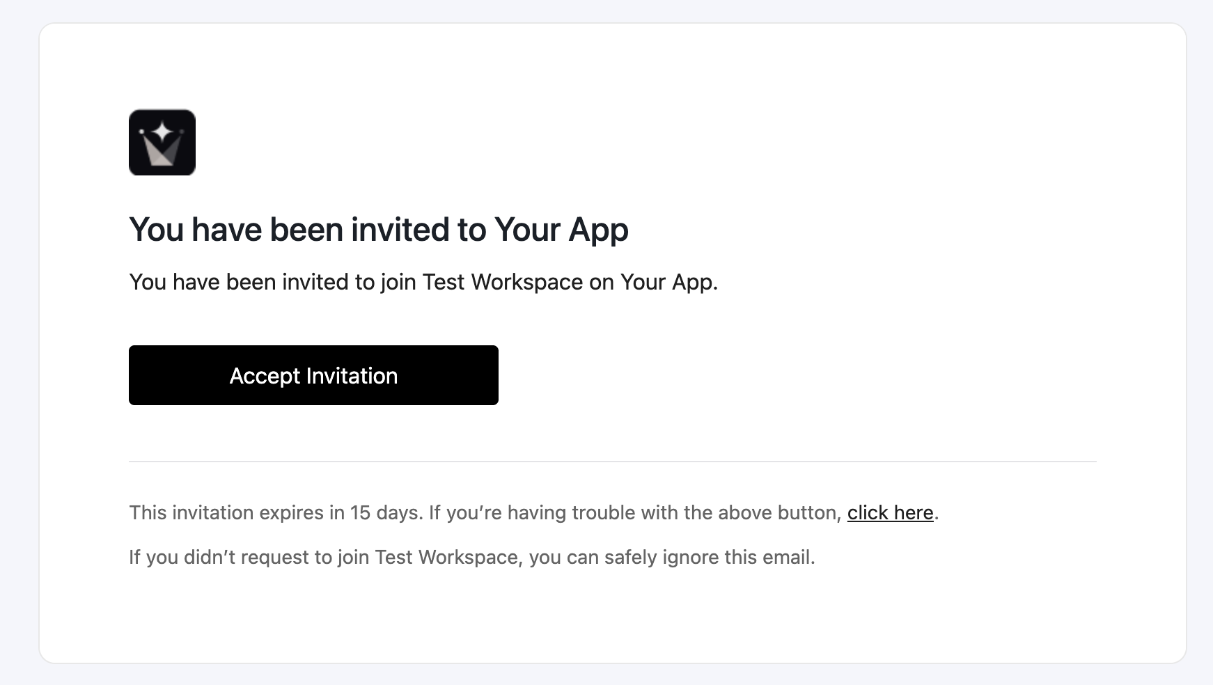 The invitation email includes a secure magic link that allows the user to complete their account setup and join the organization. Each resend operation increments the resend counter. The expiration time stamp is updated if a resend is requested upon the expiry, if not previous expiry timestamp remains.