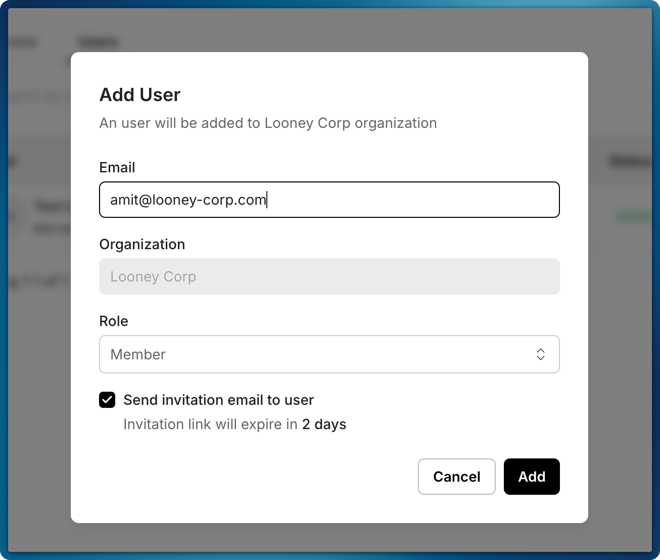 - Admin dashboards: Organization admins can invite users from a settings or team management page.