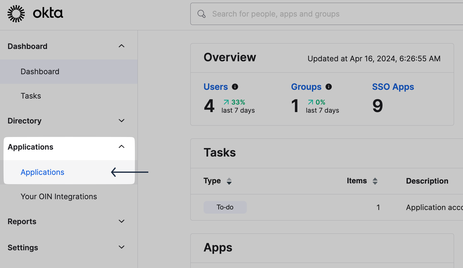Login to your Okta Admin Console. Go to Applications→ Applications.